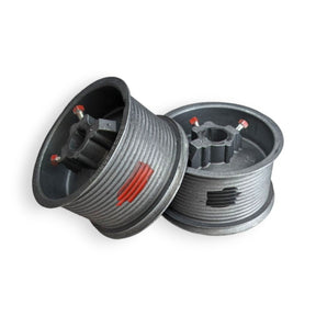 Standard lift 5.25" drum for doors up to 18 feet tall (216"). Made with cast aluminum and has a capacity of 750 lbs per drum. Works with garage doors with a 1" or 1.25" shaft depending on selection. Both have a ¼" keyway and a maximum cable size of 3/16".
